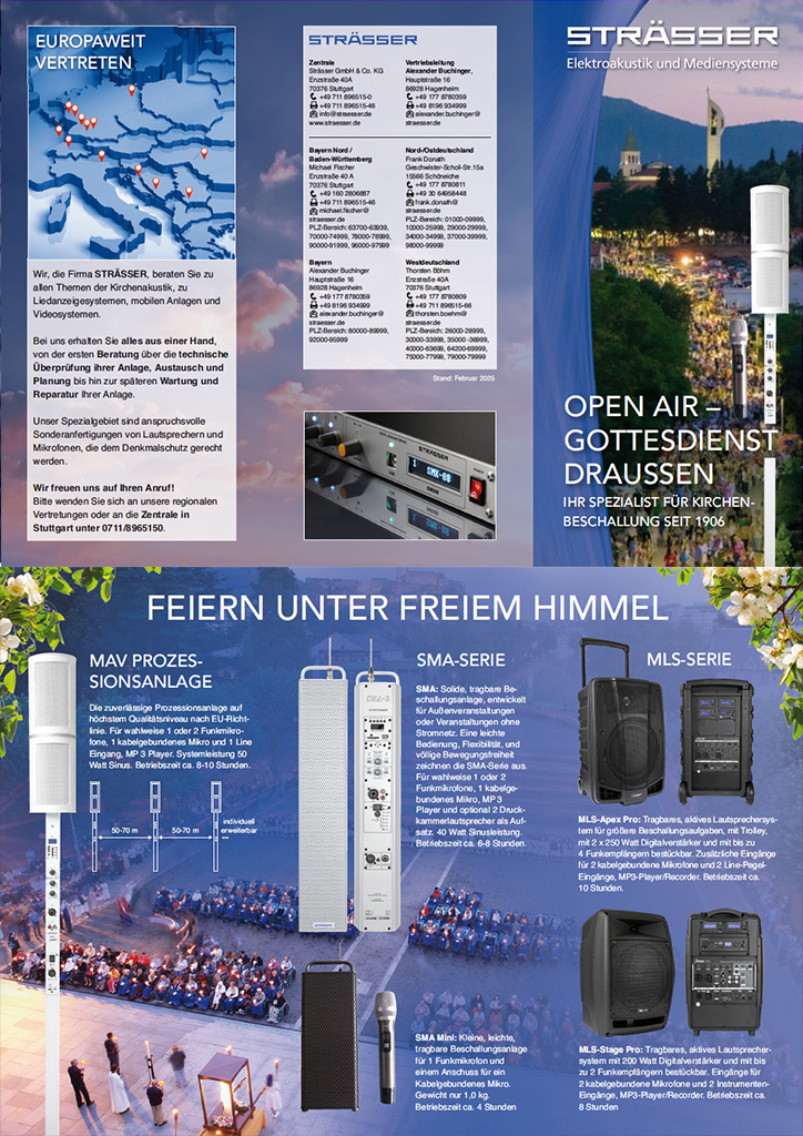 Aktuelles • News Unseren aktuellen Flyer „Ihr Spezialist für Kirchenbeschallung“ (Stand März 2025) mit einem Überblick unseres Angebots können sie sich hier herunterladen. FLYER DOWNLOAD Ihr Spezialist für Kirchenbeschallung